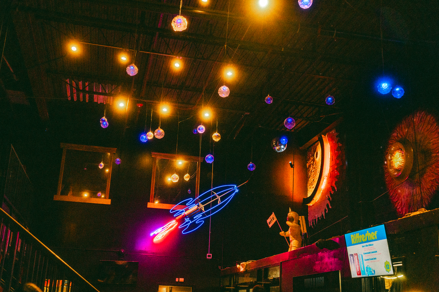And then there’s the venue itself. The Ritz has a vibe all its own. Hanging lights glow overhead like little planets, a neon rocket stretches across the wall, and the whole place feels a little spacey in the best way possible. It’s the kind of room that feels intimate even when it’s packed wall to wall.